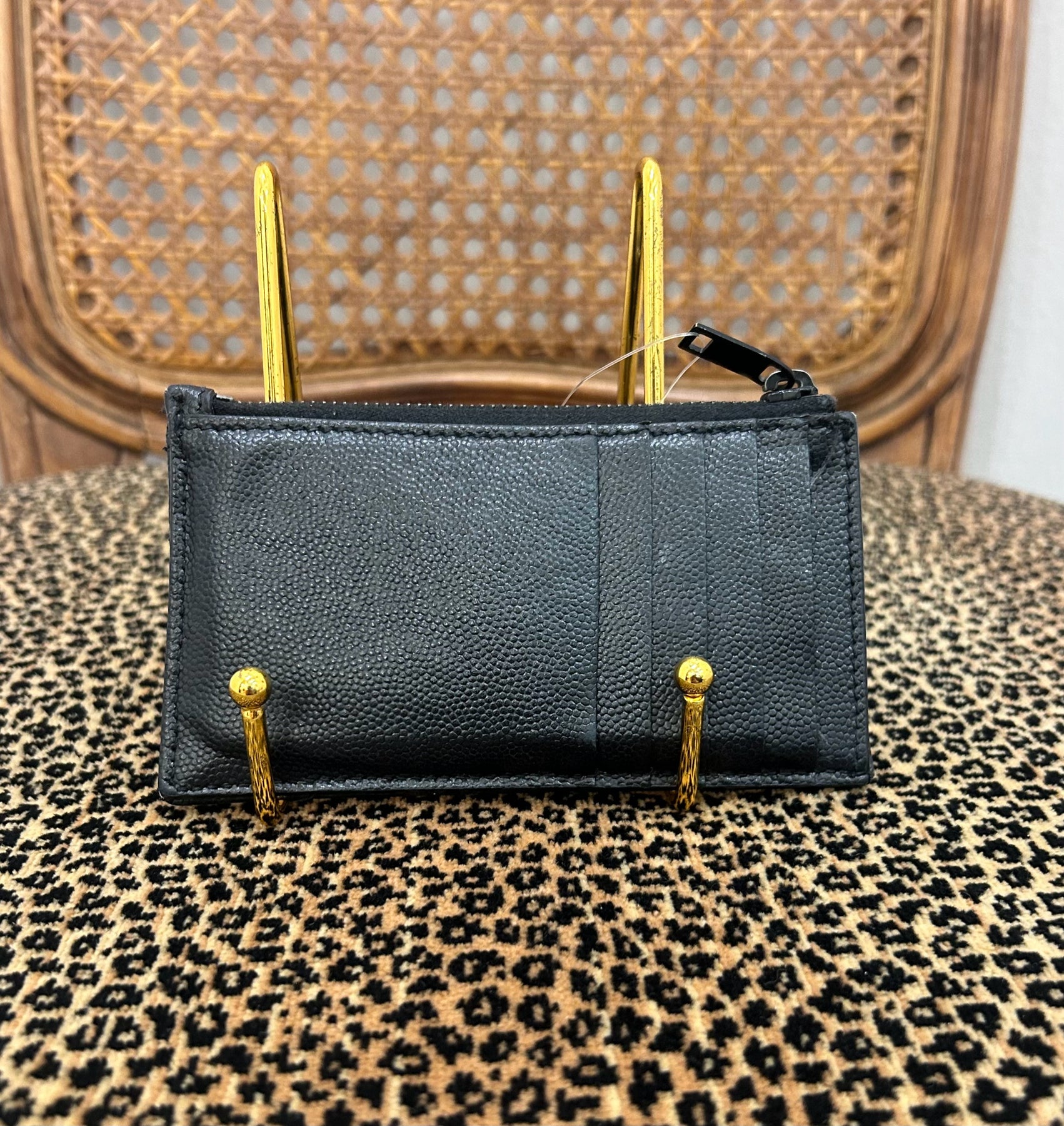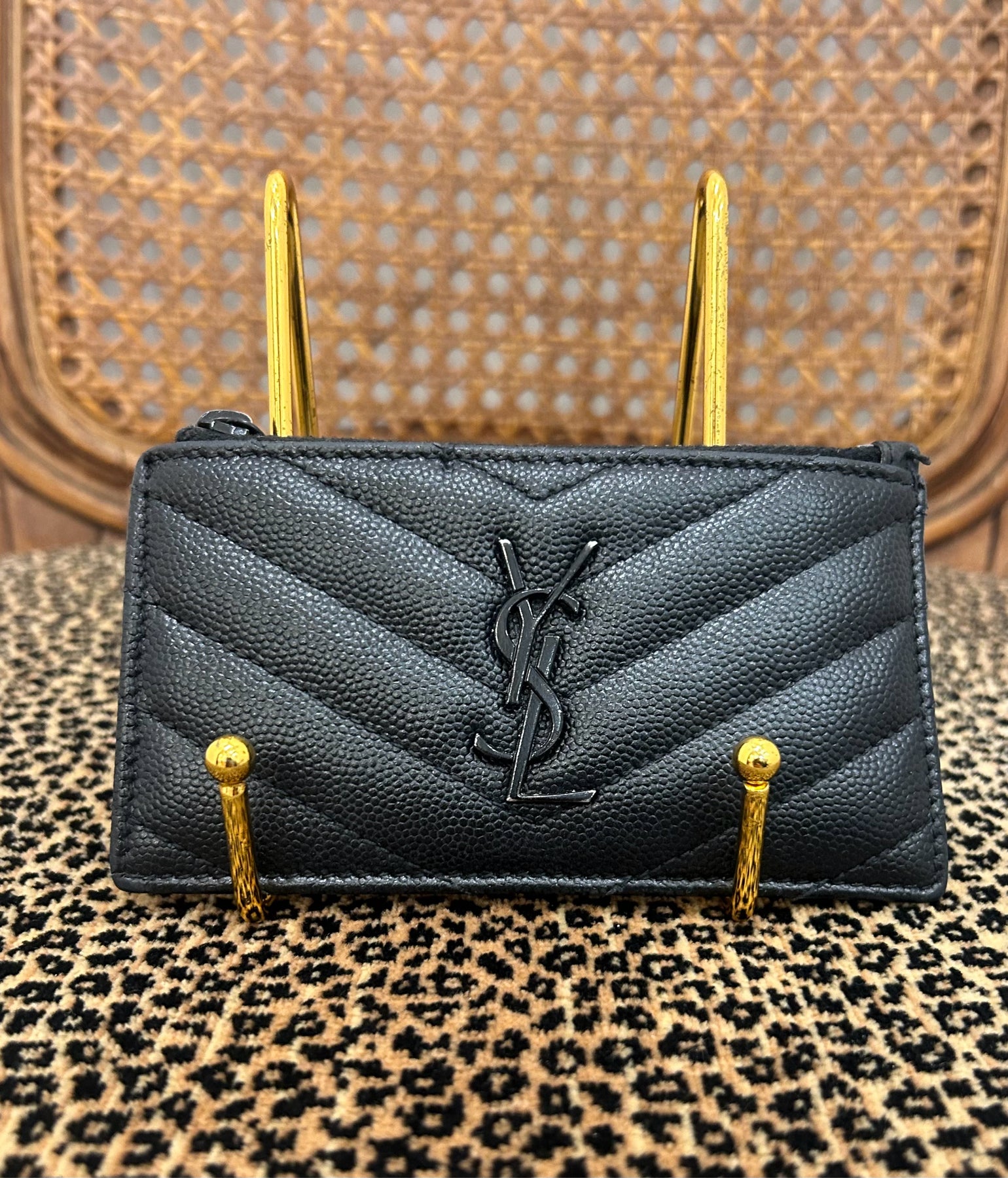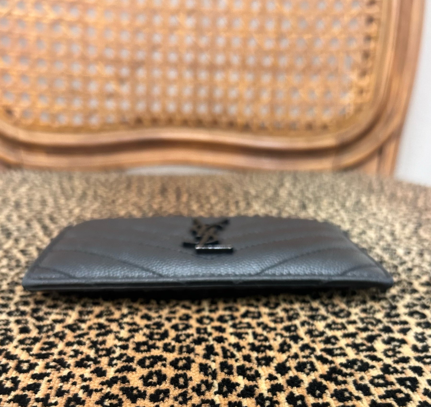 YSL Black Leather Chevron Card Holder Length: 5 in. Height: 3 in. Width: .25 in.