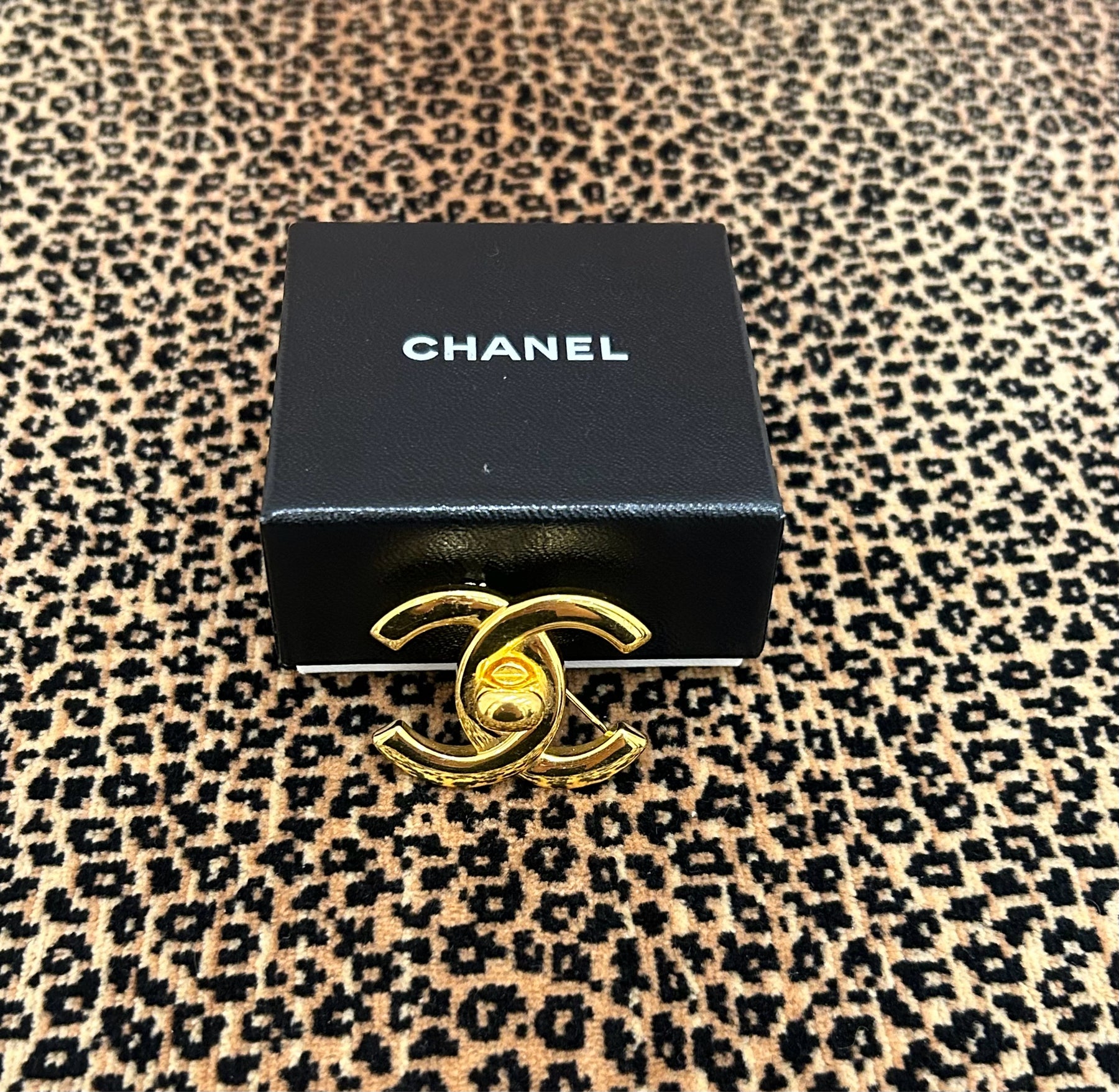 VINTAGE CHANEL LOGO TURNLOCK BROOCH